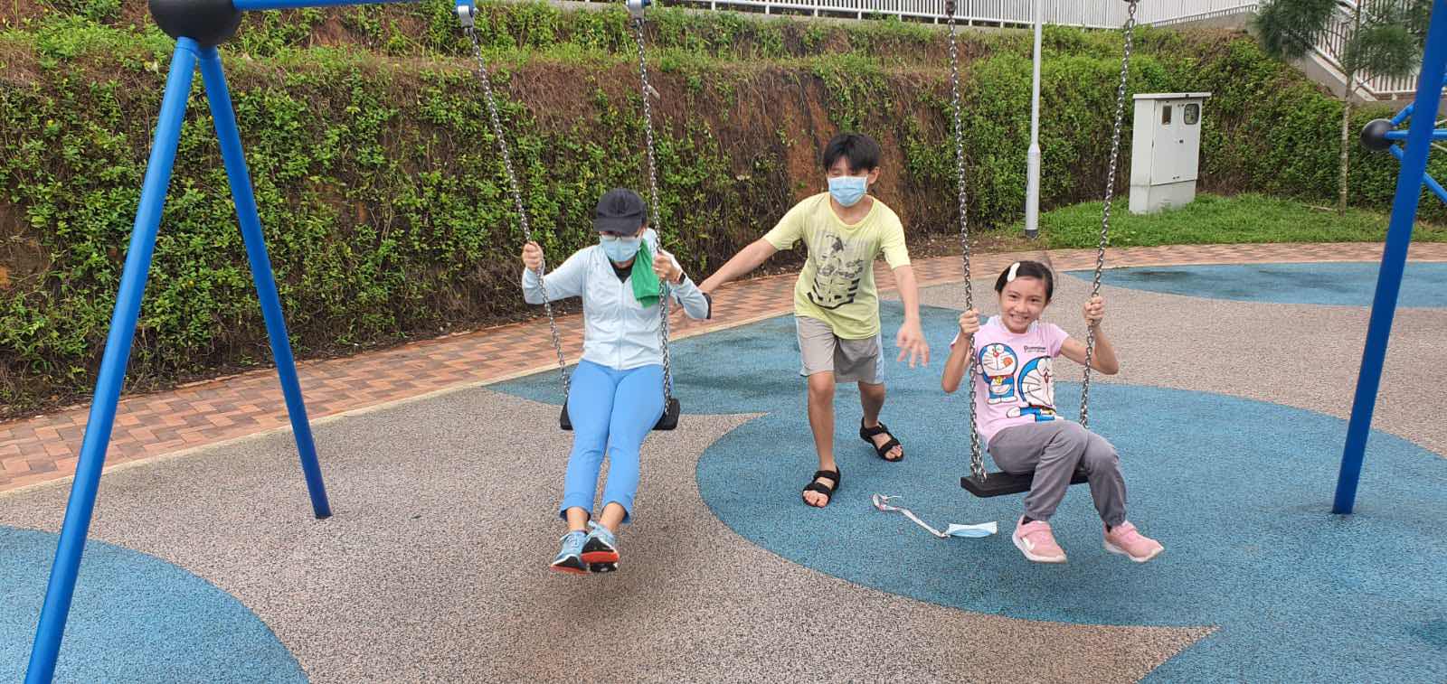 Went morn cycling w Chloe n Roy.. Shawn sleep like pig at home.. we breakfast at a coffeeshop at Punggol then go one round n short break for kids to play at the playground.. love their big laugh..